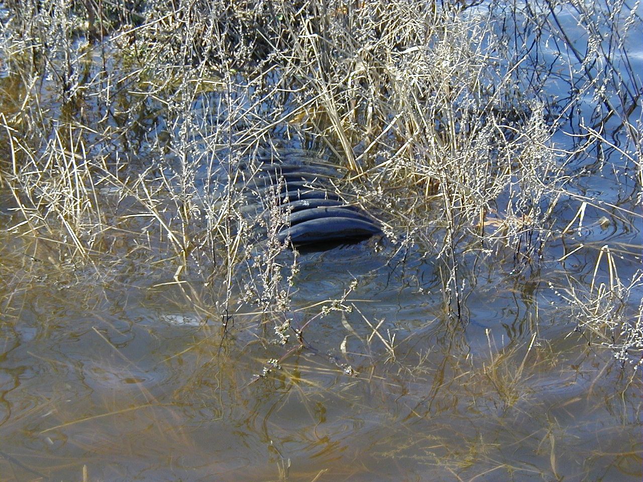 The water level control structure is used to maintain a water depth of around 4 feet over the winter and lets the water drain out during the summer growing season. The adjacent excavated areas collect water from normal rainfall and provide fresh water for the animals. 2002 is the first season for the habitat water containment area and a lot of this is what we have been told as rainfall this year has been far less than normal. The unusually low rainfall has made us rather skeptical, hopefully over this winter we will see some improvement.